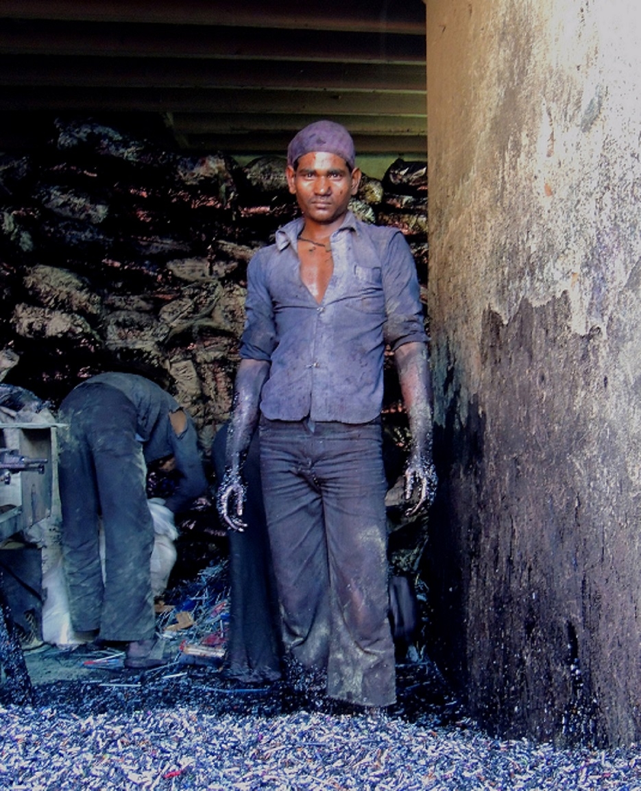 –Sí, sí –sostiene nuestro interlocutor- este chico sabe que vivirá como máximo unos 50 años. Entramos a una habitación con suelo de barro y un fuego incandescente en el centro. El hedor que desprende ese pozo de chatarra fundida es veneno puro. El joven tiene los ojos enrojecidos y no puede hablar, con el pecho agitado, respirando como respiraría cualquiera que acercara sus pulmones a esa escoria.