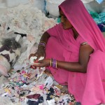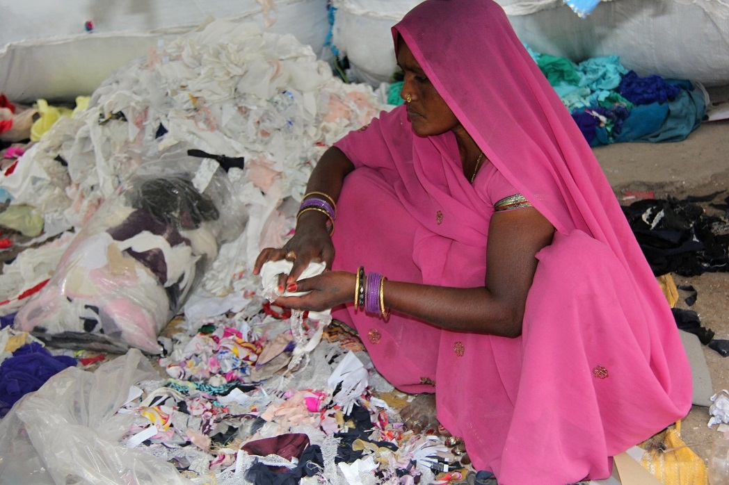 - Esta señora separa minuciosamente los trozos de tela de los que también saldrá material reciclado.