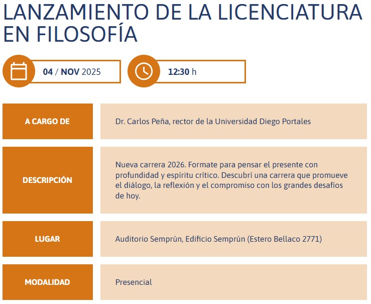 Dará este martes 4 de noviembre una Charla Magistral titulada "El sentido de la filosofía para la vida pública", a las 12.30 en el auditorio Semprún.