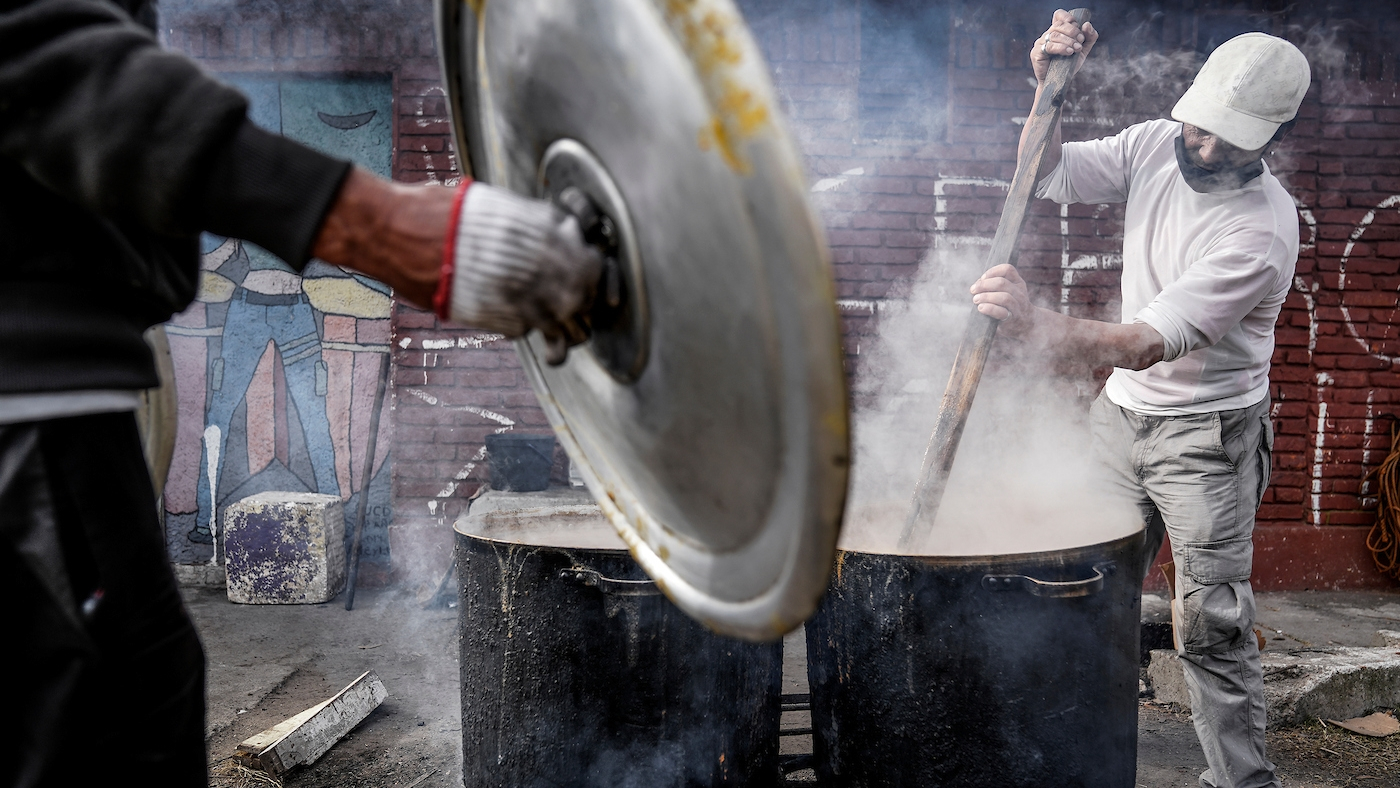 Es sábado, todavía no es el mediodía, pero el grupo de WhatsApp está que explota. Alexis consulta si alguien pasó por la carnicería a levantar la carne que fue comprada por los vecinos. Antonia se excusa y responde que ya pasa. En otra punta de la ciudad, el Bicho está levantando donaciones. Un vecino escribe en el Instagram y dice que tiene 9 litros de pulpa de tomate para donar. Le mando un mensaje a Pancho preguntándole si hoy nos trae los panes. Al rato, Marilyn avisa que Redalco le dejó las manzanas en su casa. Me llega el mensaje de Pancho con la confirmación de que hay panes. ¡Bien! Miro las listas y están completas. Seis personas para la cocina y seis más para la entrega de comida. Parece estar todo pronto bajo control para una nueva jornada que culminará por la noche cuando se termine de lavar la última olla con los restos del guiso.
