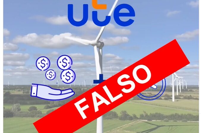 UTE informa que se encuentra circulando en redes sociales un mensaje de video falso, ofreciendo realizar inversiones de dinero en parques eólicos u otras infraestructuras eléctricas desarrolladas por UTE.